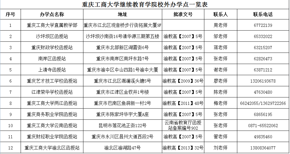 重庆工商大学48365-365.com校外办学点一览表
