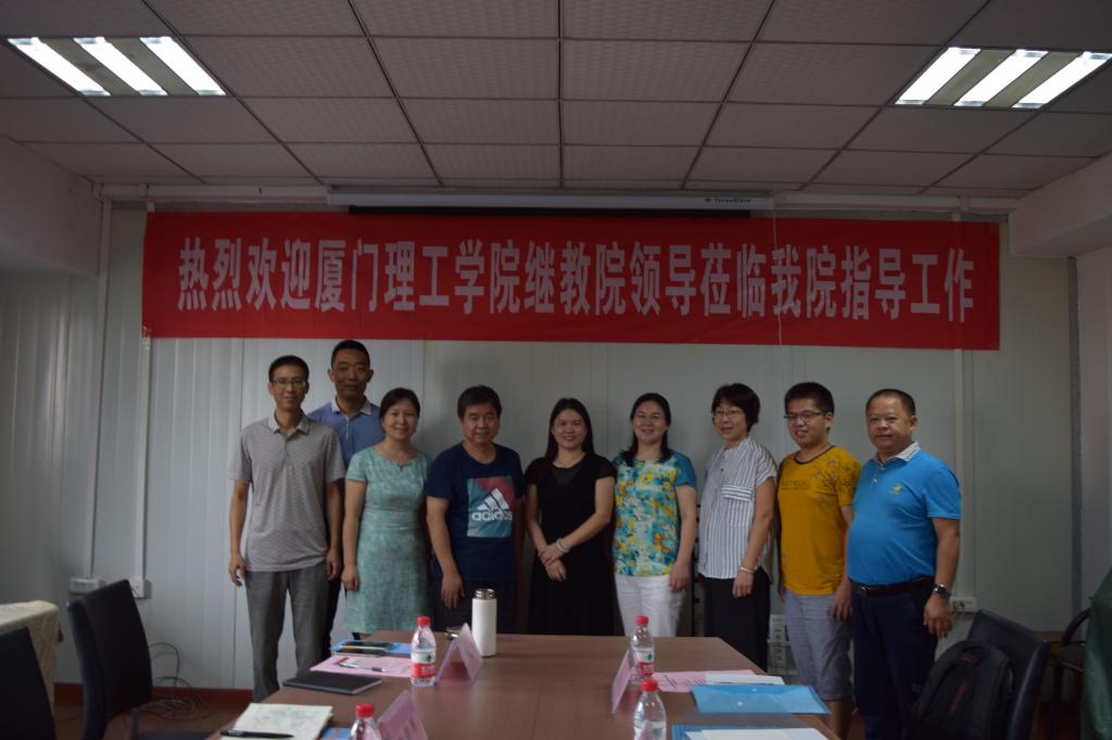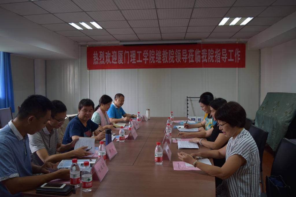 2017年9月1日,厦门理工学院48365-365.com张晓娟副院长一行到我校交流工作。我校48365-365.com胥江河院长、杜朝辉副院长、成教办谢华主任、培训班张成功主任、综合办主任陈之举参加了交流会。48365-365.com杜朝辉副院长主持了本次交流会。胥江河院长和张晓娟副院长分别对双方学院基本情况做了介绍,随后,双方围绕继续教育招生情况、教学情况、规章制度等展开了热烈的讨论与交流。
